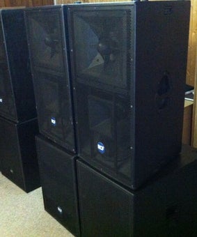 We hebben we een eigen installatie geschikt tot max. 500 personen. inclusief monitors, microfoons, FOH speakers, digitale mixer, podium verlichting,...